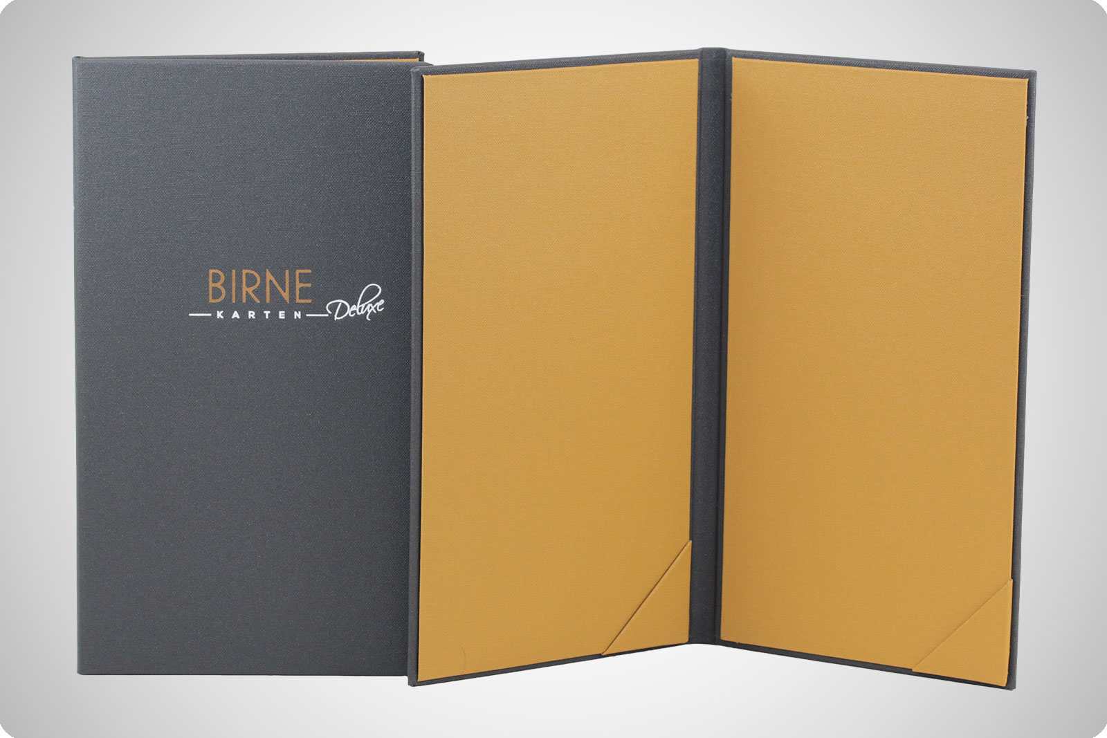 Es bereitet uns immer wieder besondere Freude, Speisekarten-Entwürfe umzusetzen und Ideen zu Wirklichkeit werden zu lassen. Wir setzen all unser handwerkliches Geschick ein, damit die entstehenden Karten den höchsten Ansprüchen genügen. Damit Sie sich vorab ein Bild von unseren Ideen machen können, haben wir unsere Serien ins Leben gerufen, die Anregung und Inspiration zugleich sein sollen. Dazu dienen die Materialmuster und Vorschläge für mögliche Umsetzungen, die natürlich nach Ihren Wünschen geändert werden können. Das zentrale Element einer Serie ist die Trägerart - die Methode, mit der die Inhalte und die Karte verschmelzen und zu einem Gesamtkunstwerk werden. Im Fall der Serie "Birne" sind das die praktischen und attraktiven Steckecken.